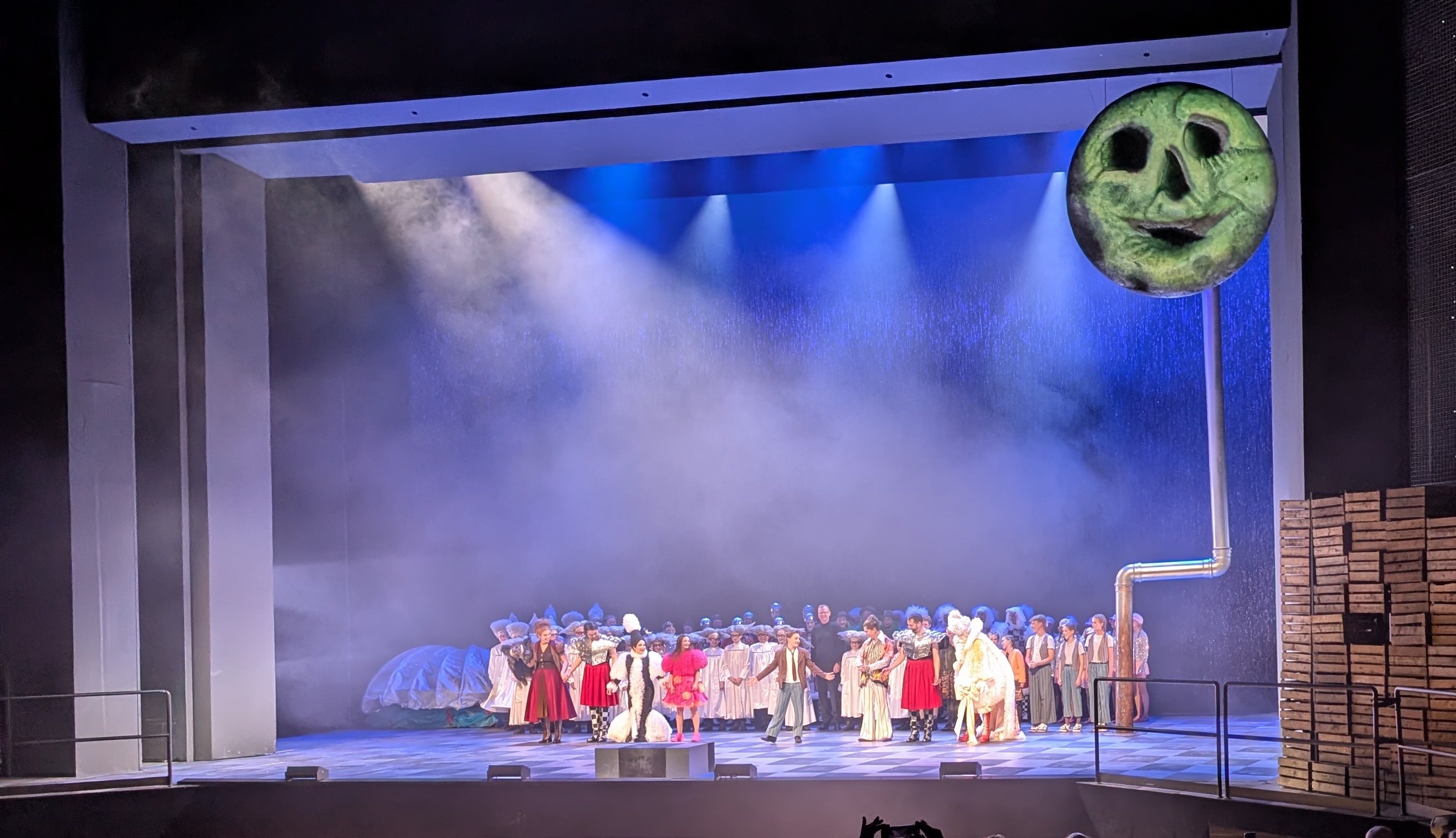 Das Aufgebot auf der Bühne und im Graben (Leitung: Dominic Limburg) ist durchweg gemischt mit professionellen und Laienmusiker*innen. Jeweils circa hundert Personen. Die Inszenierung von Brigitte Dethier und Ausstatterin Carolin Mittler greift in die Vollen. Alles wird deutlichst vermittelt, ohne irgendwelche Seitenumwege. Das zum großen Teil sehr jugendliche Publikum applaudiert dem etwa zweistündigen Abend denn auch mit Standing Ovations. Nur ganz wenigen kleinen Besuchern war das Stillsitzen doch zu anstrengend. Eine schöne Idee, ein solches Werk mal mit allen technischen Möglichkeiten eines modernen Opernhauses zu stemmen. Und die Hoffnung bleibt, so auch ein jüngeres Publikum für das Kunstwerk Musiktheater zu interessieren.